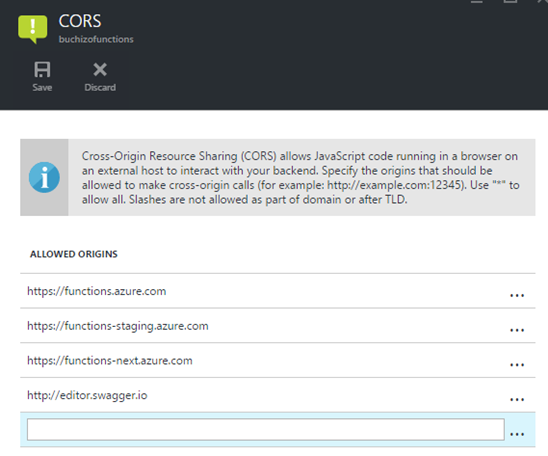 - ブラウザからHTTPトリガーなFunction Appを呼び出したりする場合、CORSの設定が必要になります。