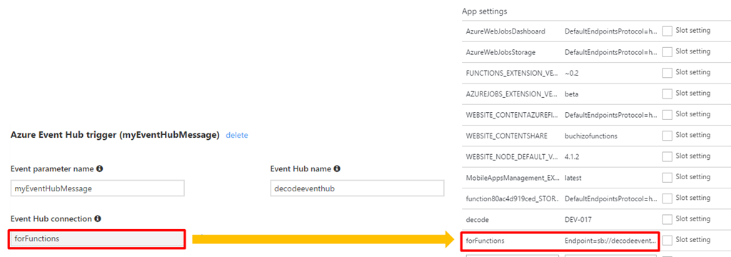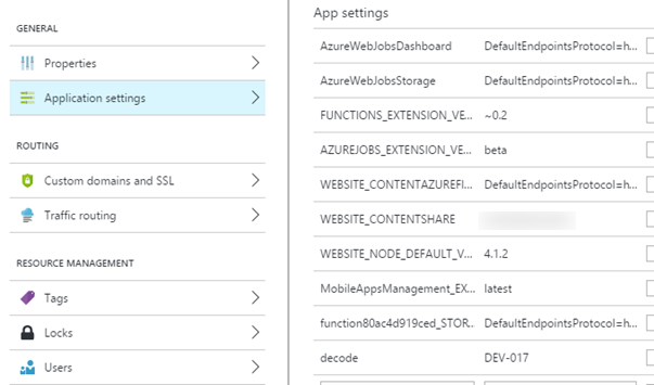 - Function app settings