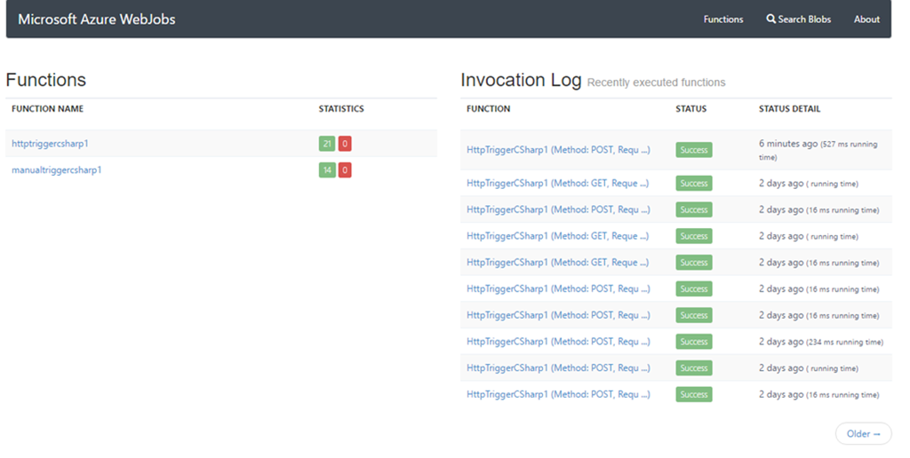 以下のInvocation logは直接参照したりする場合です。纏めたものがMonitorで見れるようになったので触ることはないかと思います。
