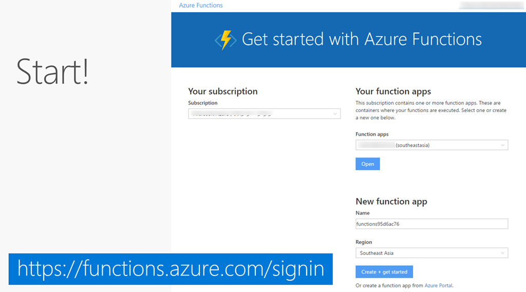 https://functions.azure.com/signin にアクセスします!