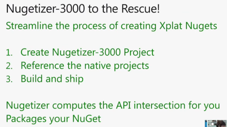 クロスプラットフォーム対応NuGetパッケージつくるプロセスを楽にするツールですかね。詳細はBreakout Sessionかな?