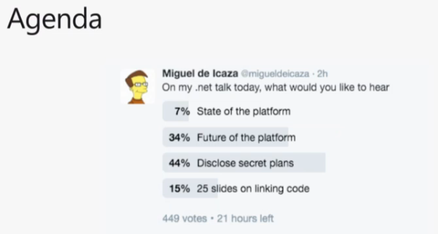 プレビューやらRC込みで出してフィードバックくれてありがとう的な?あとMiguel氏のお気に入りはXamarin StudioとDarkテーマ、Roslyn統合、ターゲットUIの再デザインのようです。