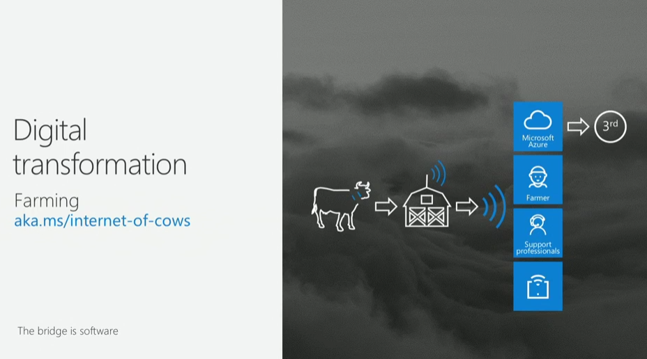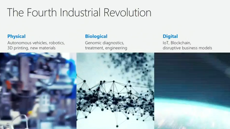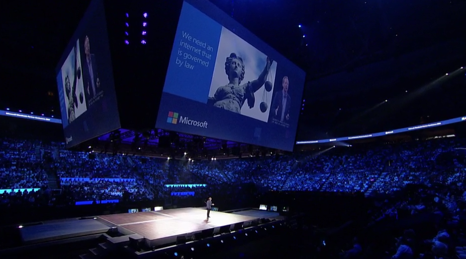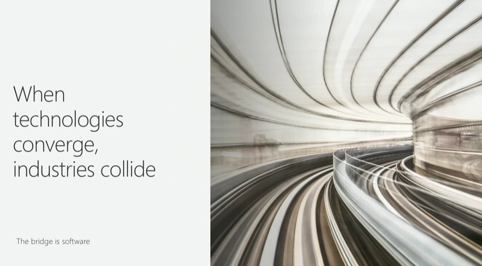 という感じで社長兼最高法務責任者なBrad Smith氏。世界の変化みたいなところから。産業革命は蒸気機関の後は電気、エンジンにクラウド。![]()