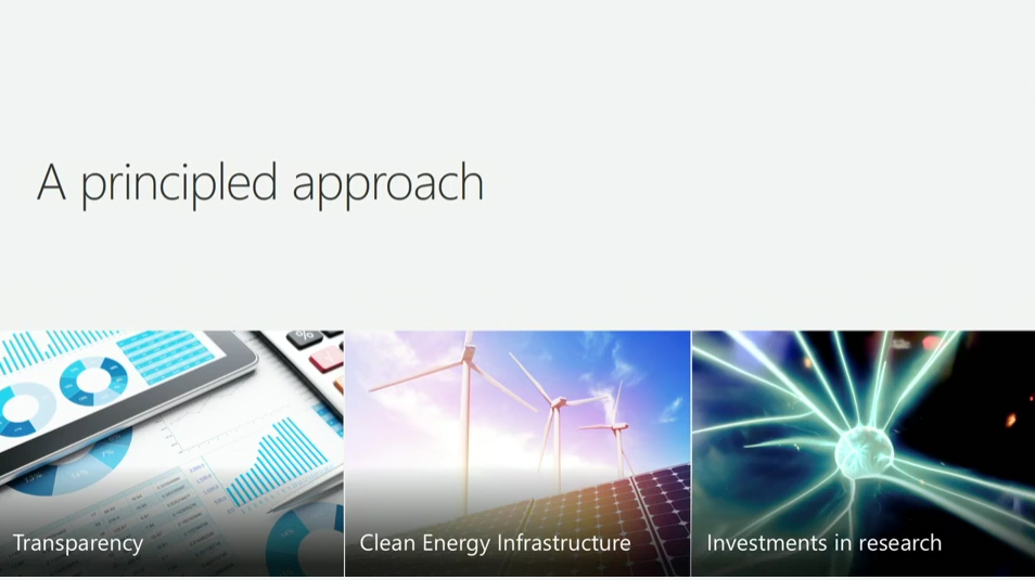 理にかなったアプローチとして透明性、クリーンエネルギーなインフラストラクチャ、研究への投資を挙げてます。データセンターでより多くの再生可能エネルギーを使用することを誓約してたり。![]()