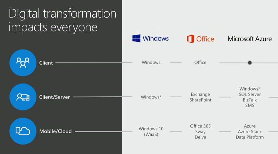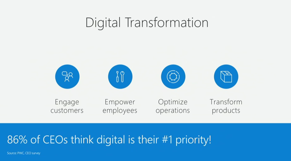 次は仕事がなくなる?という話。Microsoft(と我々パートナーは、かな)はすべての企業が変革するのを支援する必要があると。![]()