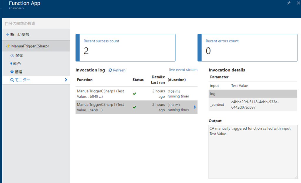 ライブイベントストリームは別サイトのままですが、呼び出しログや呼び出し時のパラメーターを参照しやすくなりましたね。