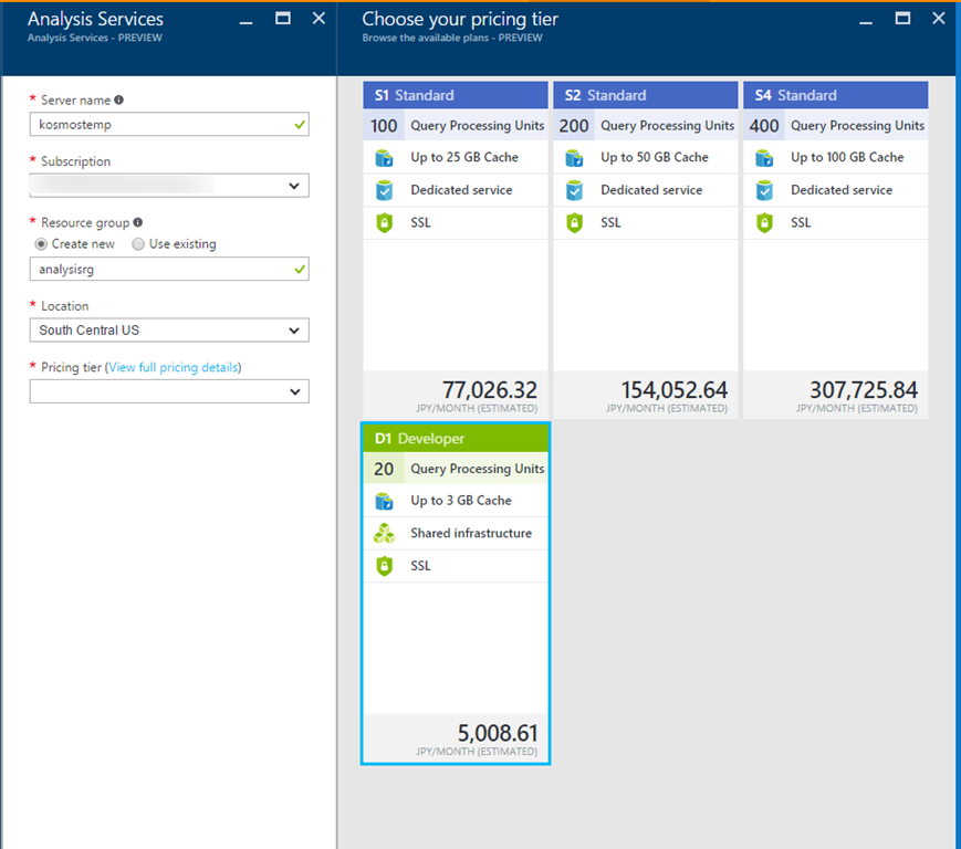 唐突ですがAzure Analysis Services というのがPreviewで増えました。