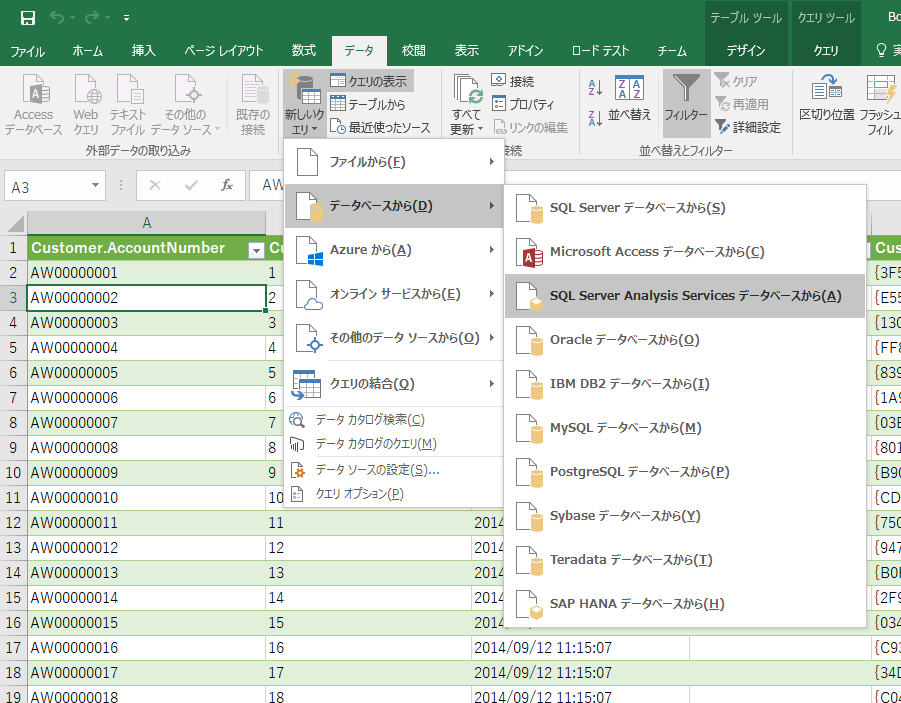 なお別にExcelでもSQL Server Analysis Servicesに接続できるので、接続先サーバー名をポータル上からコピーしたものにするだけで普通に参照できます。![]()