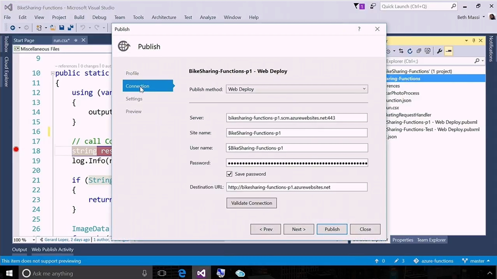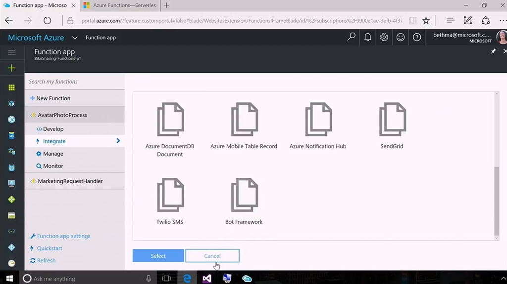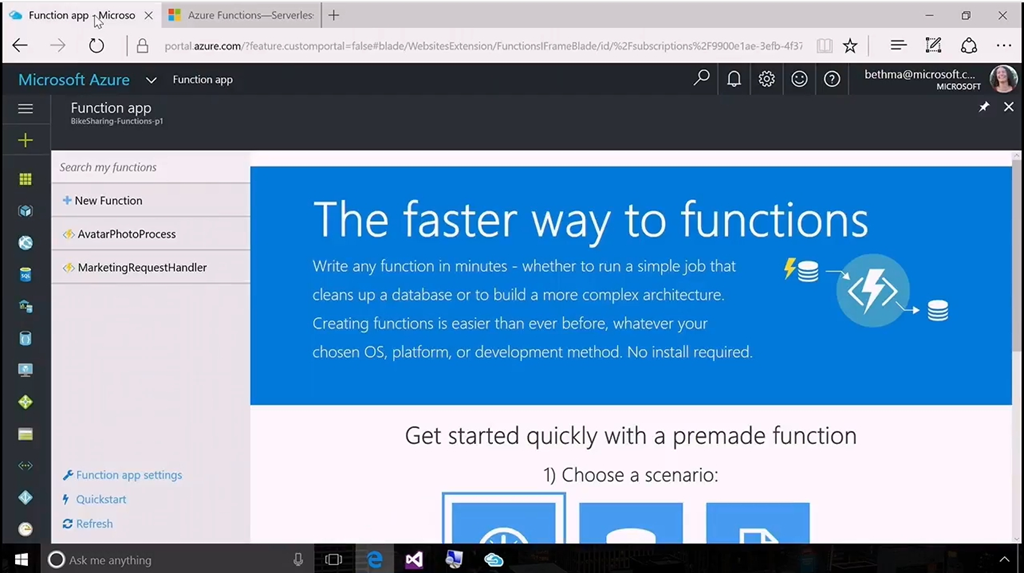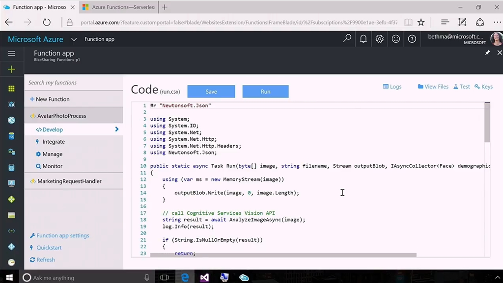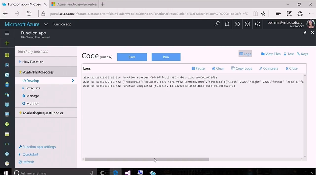 次はServerless。ということでAzure FunctionsがGAです。デモはBeth氏から。最近はBindingが増えてSendGridやTwilioなども連携できるようになりました。デモ内容は自撮り画像をUploadするとCognitive ServicesのFace APIかな?を使って人物の年齢をTableに保存するというもの。Visual Studioを使ってリモートデバッグしたりAzure上にデプロイしたりもできます。![]()