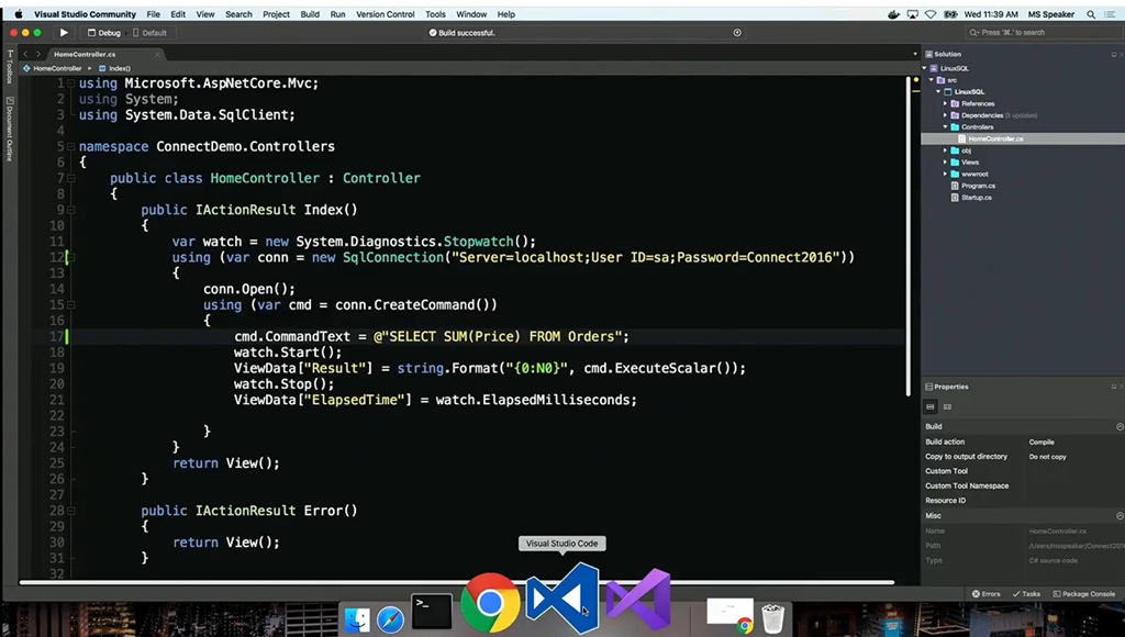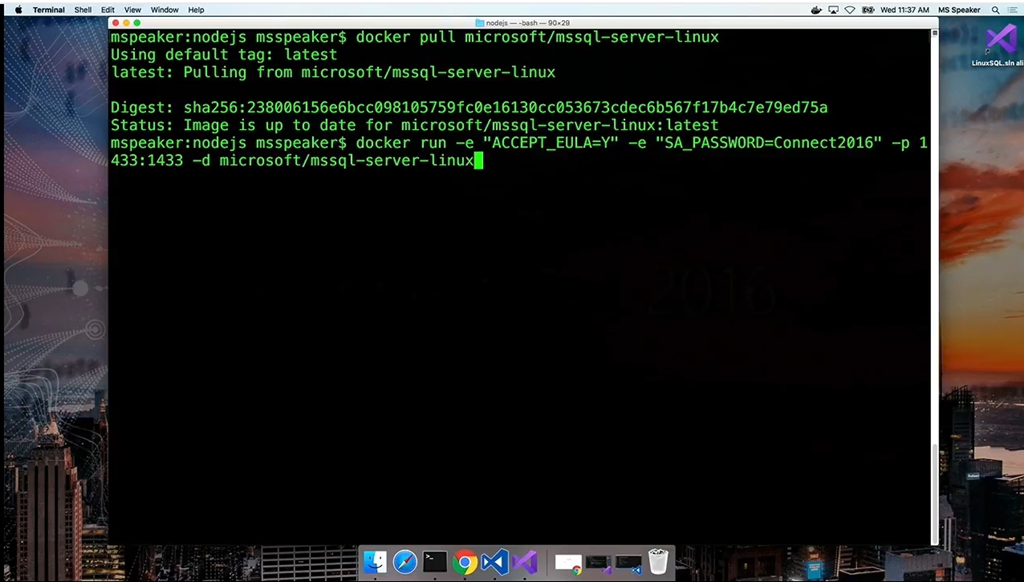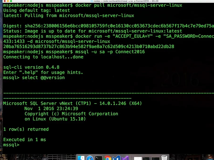 そしてSQL Server on Linuxのお話。デモはLara氏から。macOS上でDockerコンテナーでSQL Serverを動かします。SQL Server vNext (CTP1) ver 14.0.1.246 がmacOS上のDockerコンテナー(Ubuntu15.10)上で動いてます! Visual Studio CodeとSQL Serverの拡張機能を使いつつASP.NET CoreなWebアプリからローカルのSQL Serverにつなぐアプリのデモでした。(全部macOS上で完結してます)![]()