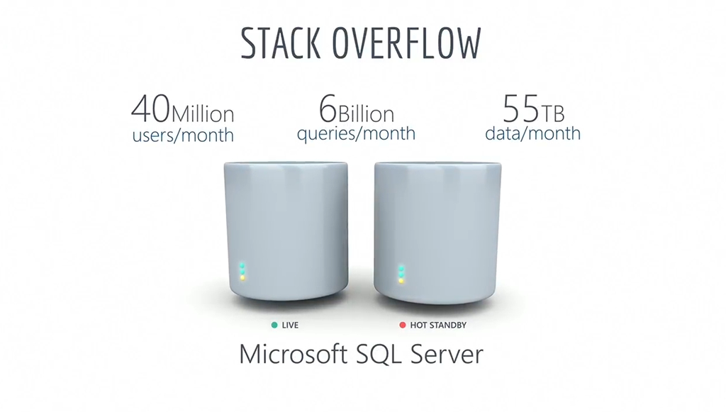 SQL ServerといえばStackOverflowということで(?)、StackOverflowのお話。こんだけ使ってますよ的な。![]()