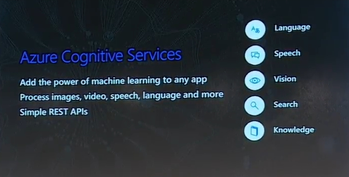 次はCognitive Services系のお話ですね。まずはおさらい。昨今データをより深く利用したりするのに機械学習の成果であるCognitive ServicesといったAPIを使ったり、Botをアプリに組み込んだりサービスに組み込んで利用するというのがあります。![]()