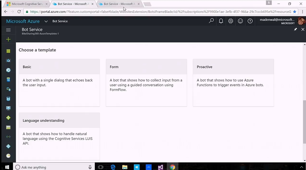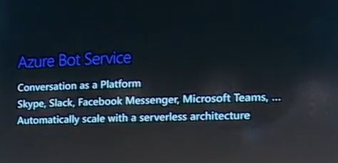 デモは再度Lara氏から。Face APIを使ってリアルタイムに人の認識と顔の解析(年齢や表情など)。Botとの連携では最初に人を認識してその後音声→テキストに変換、Botが解析、文章に応じた必要な処理をするデモでした。Azure Bot Serviceを使うとBot部分を動かすプラットフォームを簡単に作ってポータル(ブラウザ)上でエミュレーター相手にテストまで可能です。![]()