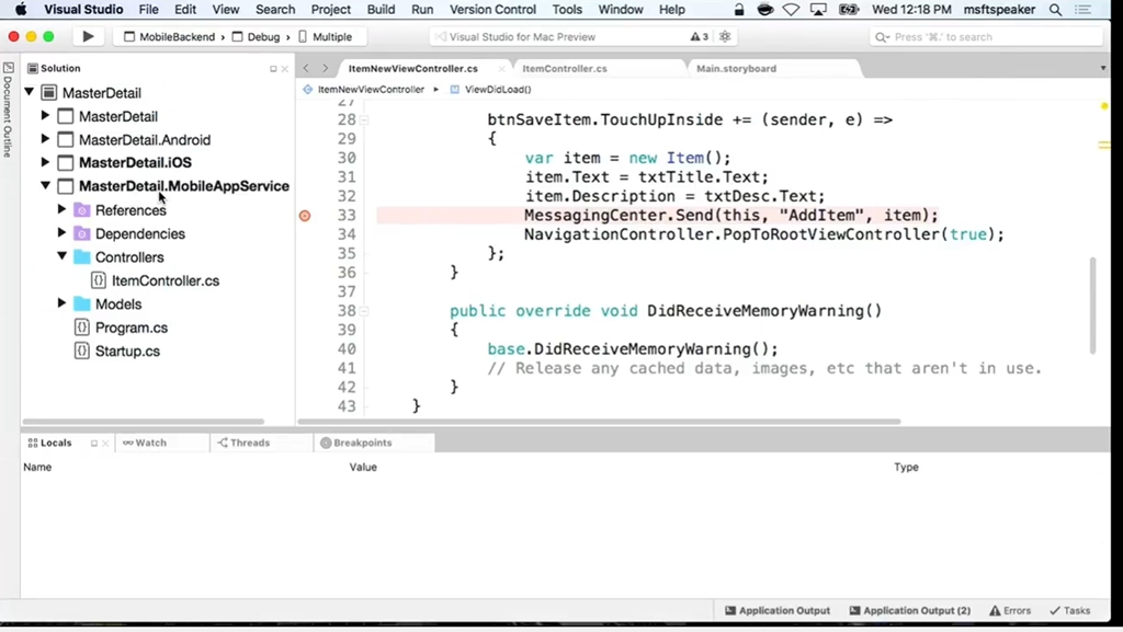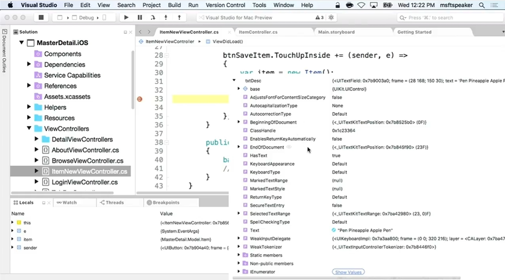 次のデモはMiguel氏。Visual Studio for Macのデモですね。もちろんデバッグもできます。Xamarin.iOSやXamarin.Androidも。![]()