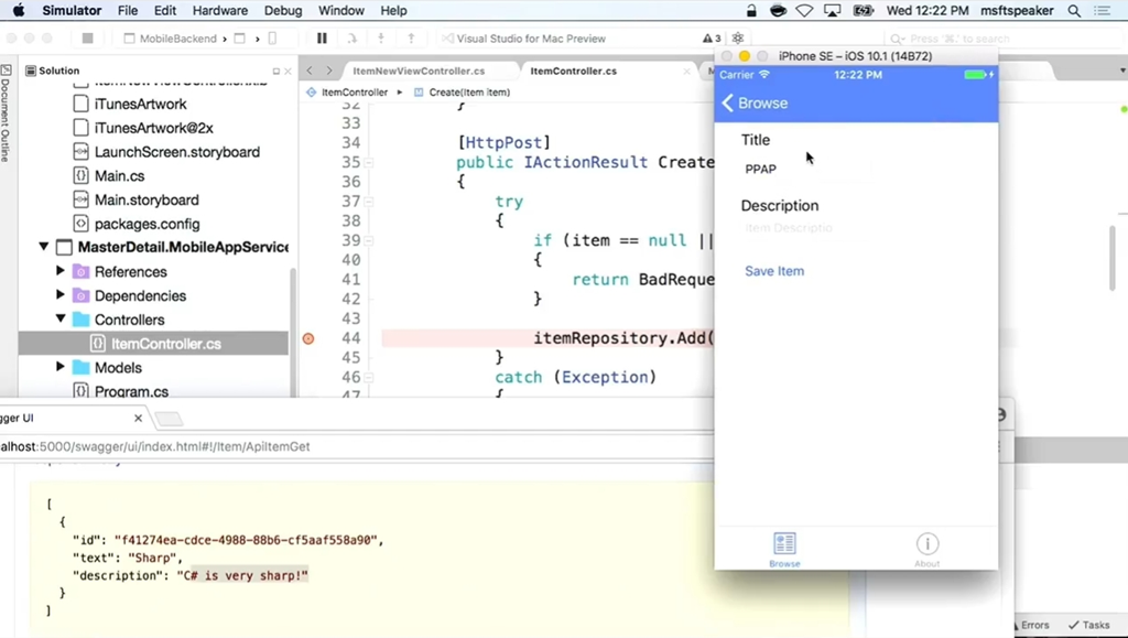 ASP.NET CoreのWeb APIなアプリも同じようにVisual Studio for Macで開発・デバッグできるので両方あわせてデバッグしやすいですね。(PPAPネタはさておき)![]()