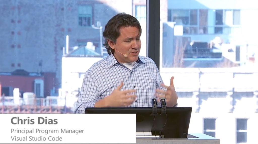 ということで最初のデモはChris氏からVisual Studio Code。クロスプラットフォームで動くということでmacOS上で実行してみます。![]()