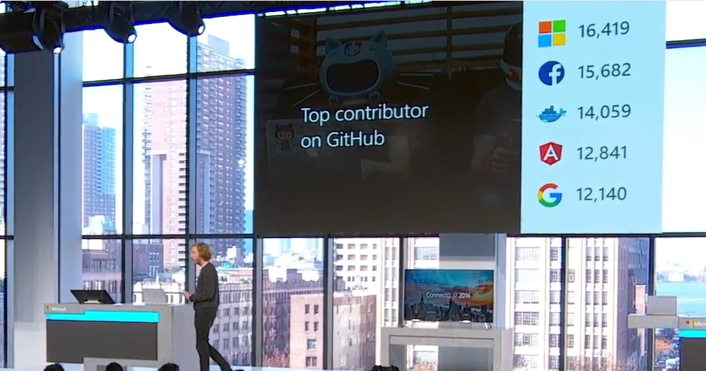次はGitHubのCEO、Chris氏が登場です。GitHubの1番のコントリビューターはMicrosoftになってるとかOSSでのエコシステム的なお話など。![]()