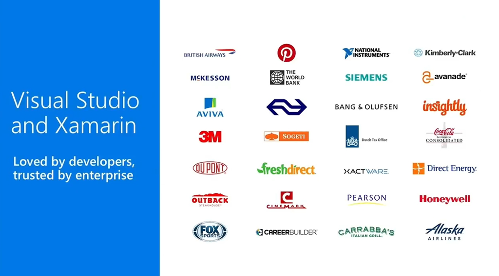 次はNat氏。モバイルアプリケーション開発周りのお話&デモなどです。すでにVisual StudioとXamarinを使ってモバイルアプリ開発してる会社もたくさんあります。![]()