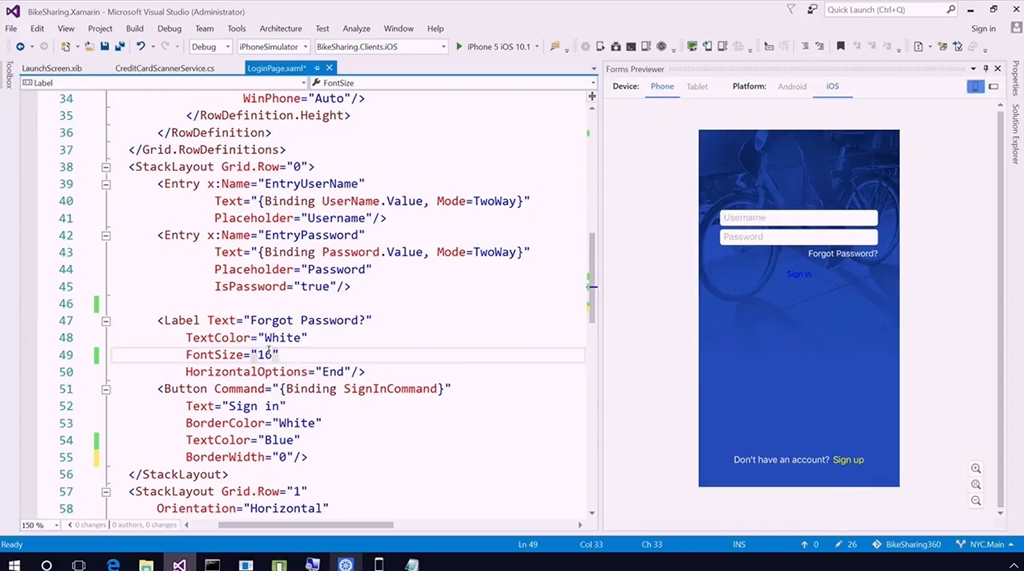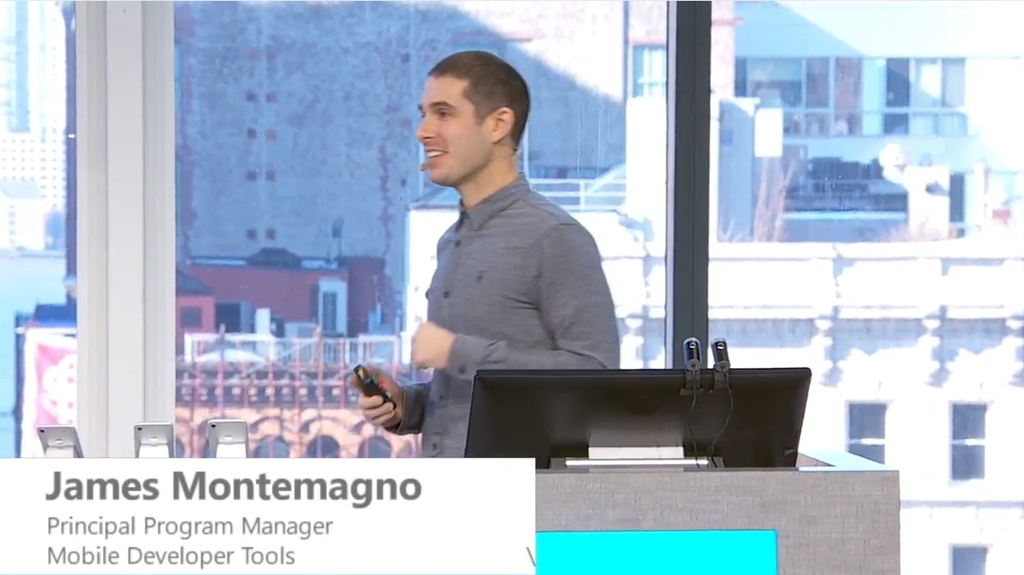 デモはJames氏から。テンション高いw Windows上でUWP/Android Emulator/iOS Simulatorを動かしてくる祖プラットフォーム開発。画面部分はXamarinで。Xamarin.FormsもForms Previewということでプレビューしながら画面の開発を行えます。Xamarin Inspectorでオブジェクトの階層構造を3Dでみたり、リアルタイムで変更したりすることもできます。![]()