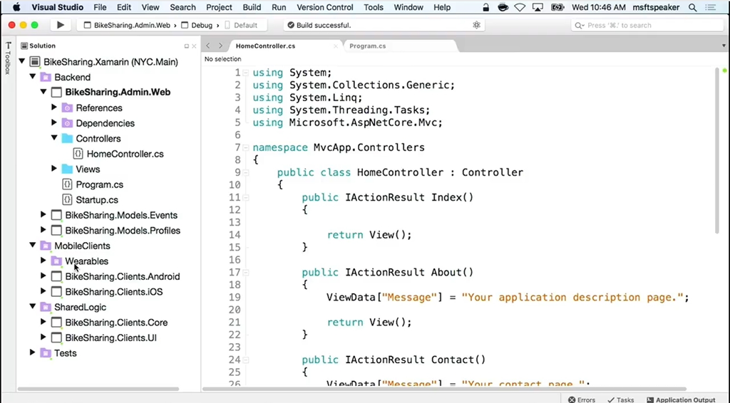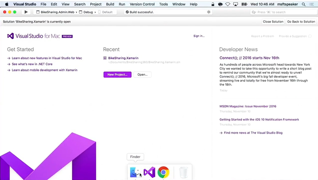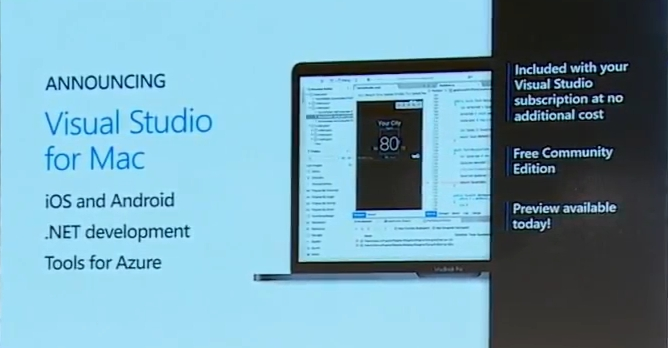 ということで次は… Visual Studio for Mac!今日からPreview版が利用可能です。.NET CoreやASP.NET Core、Xamarinを使った開発がVisual Studioで、macOS上で行えます。もちろんIDEなのでデバッグも可能。iOS/Android開発、.NET開発にAzure用ツール(Tools for Azure)がついてきます。![]()