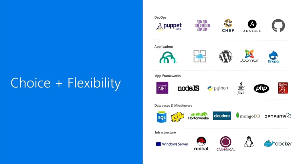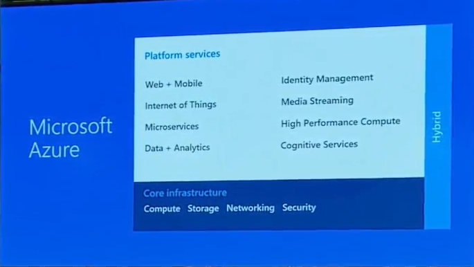 次はAzureの番ですね。選択と柔軟性ということでいろんなテクノロジーやOSSが選択できます。データセンター(リージョン)も今は38か所(アナウンスのみ含む)。各種認定なども継続的に取得していっています。まだおさらい的な感じですね。そして昨今のトレンド的にはコンテナー。![]()
