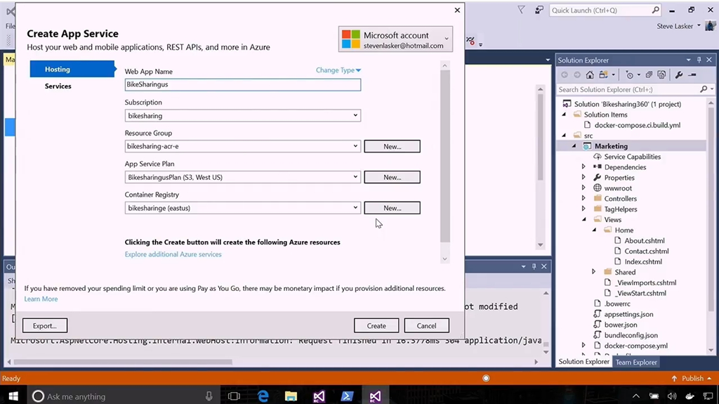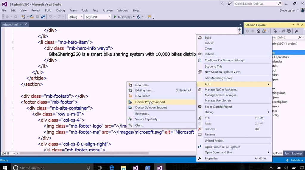 今回はDockerサポートを使ってました。dockerfile作ったり拡張(エクステンション)のおかげでDocker Hubから元イメージをインテリセンスで選んだり。できあがったDockerコンテナーをDocker HubにPushしたり。