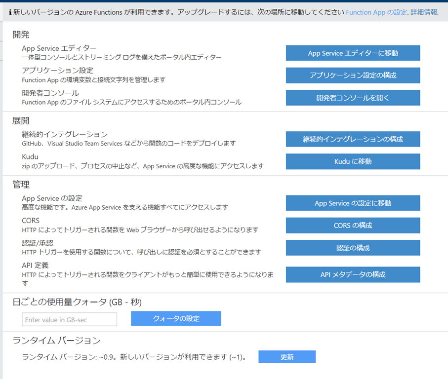 - ランタイムが1.0になりました。ポータルも少し変わってますね。また実行されすぎないように使用量にクォータを設けることもできるようになりました。