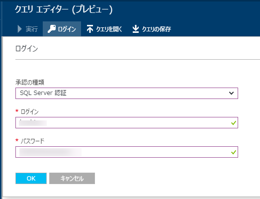 クエリエディターが開くので最初にログインを選択して資格情報を入力します。![]()
