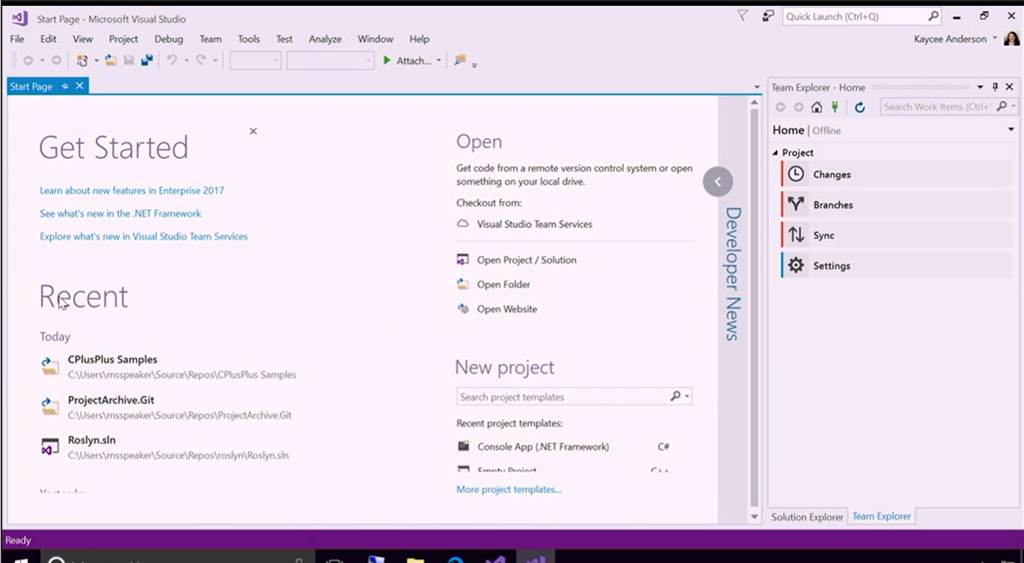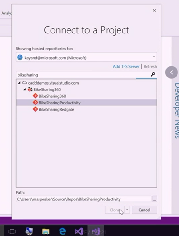 まずは実際にVisual Studio 2017のデモで。インストーラーもブロックで分かりやすく個別に入れやすく。プロジェクトもVSTSから直接リポジトリ選択して開いたりとか。![]()