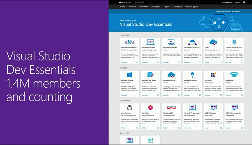 - New benefits for Visual Studio subscribers and Dev Essentials members