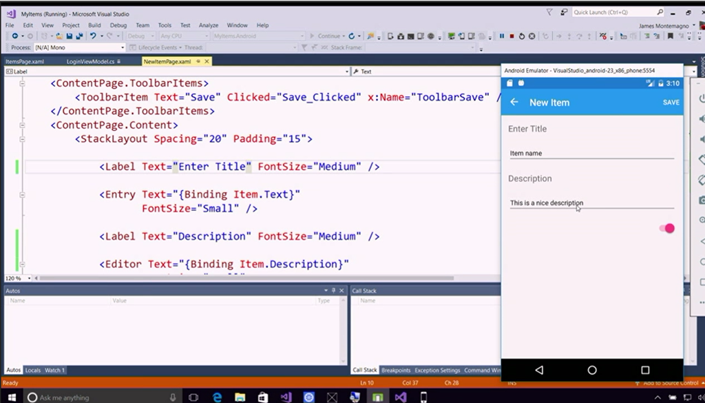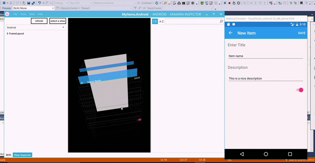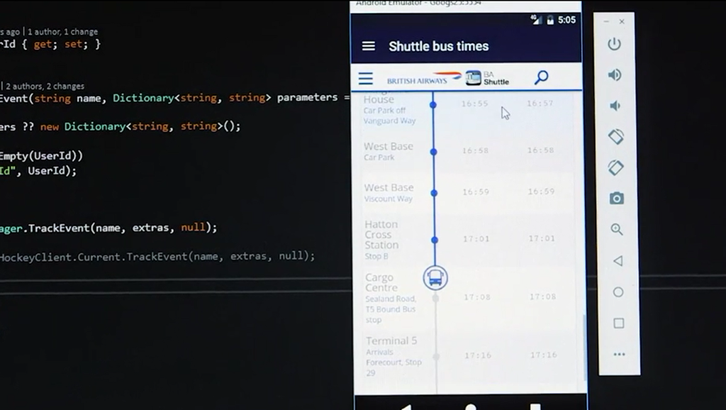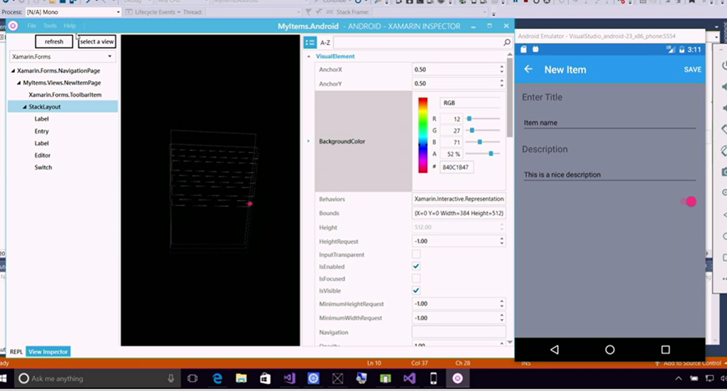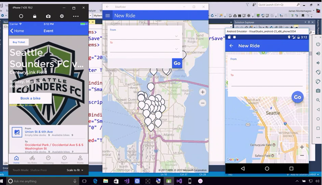 実際にデモで。iOS/Androidもエミュレーターで動くしUWPもいれて3プラットフォームのアプリを1つのIDEで開発できます。Xamarinも統合感がだいぶましたかな?ライブで設定を変えたりできるインスペクターも。あと地図などのコンポーネントもマルチプラットフォームですね。Apple Watchにも対応してます。