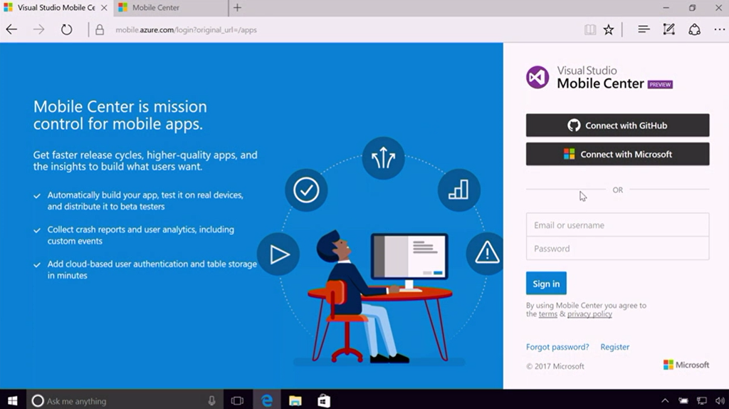 昨年のConnectでもあったかと思いますがVisual Studio Mobile Center(Preview)もXamarinサポートなど強化されたものがすぐ使えます。![]()