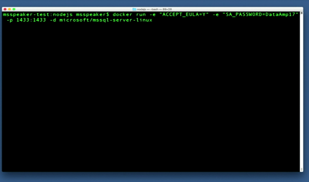 デモはLara氏から。Dockerコンテナー on macOSな感じで。SQL Serverに接続するアプリもnode.jsなどで。![]()