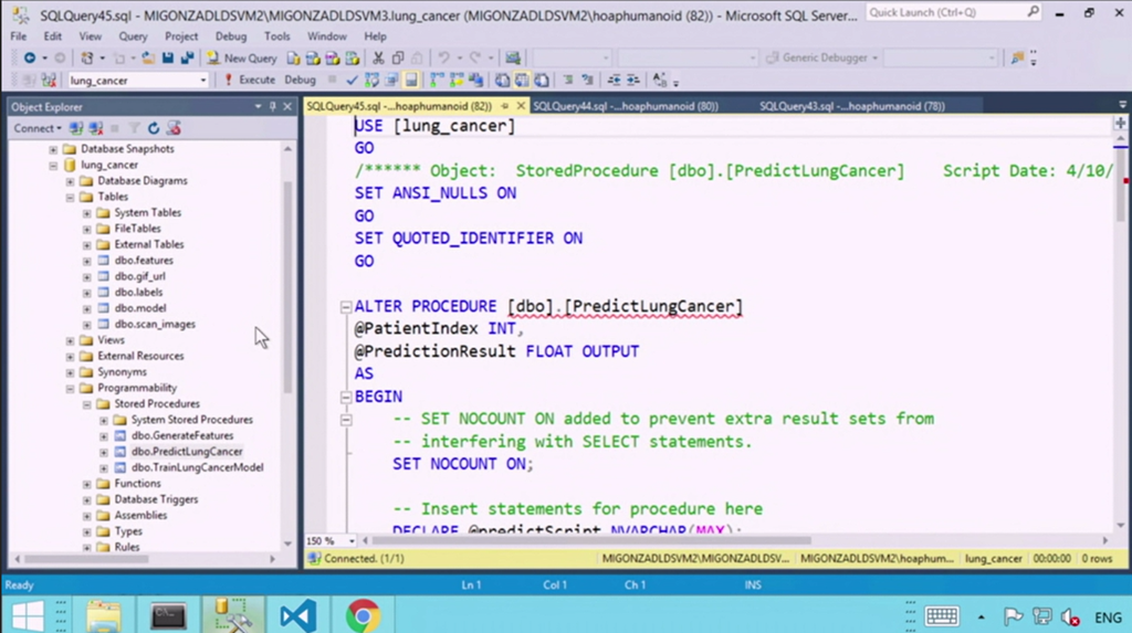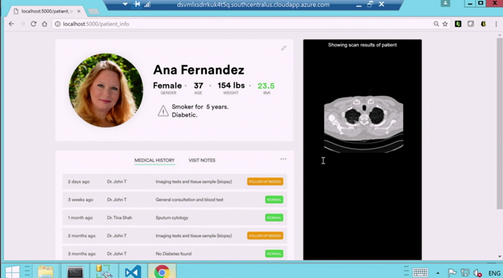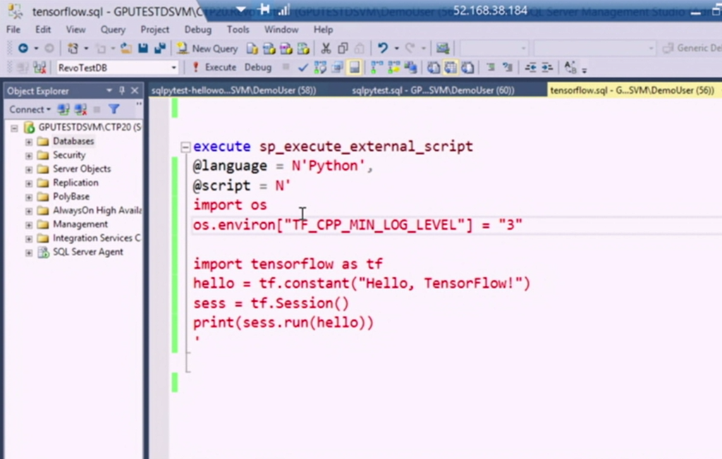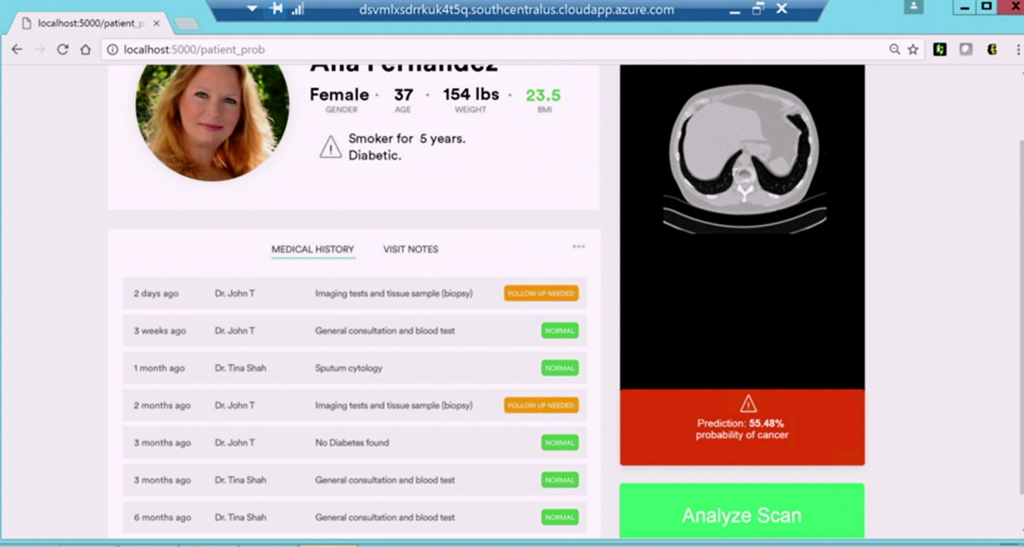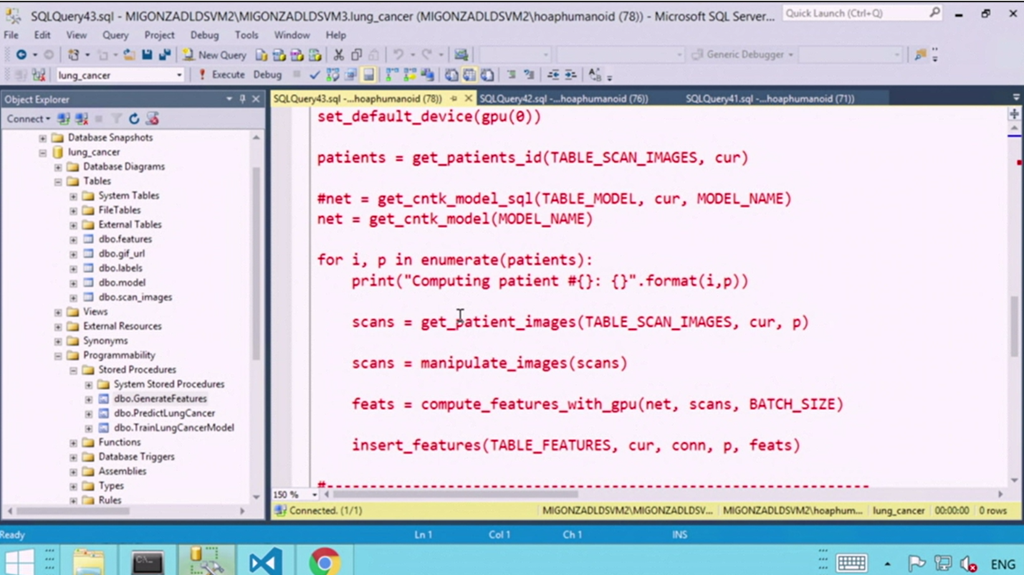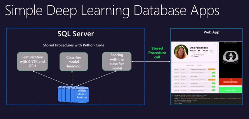 デモは癌の予見ですね。Pythonコードでディープラーニングさせる部分はかいてて外部コードとして実行できたりデバイスとしてGPU指定できたり。登場人物がSQL ServerとWebアプリしかいないのにディープラーニングできちゃいます。![]()