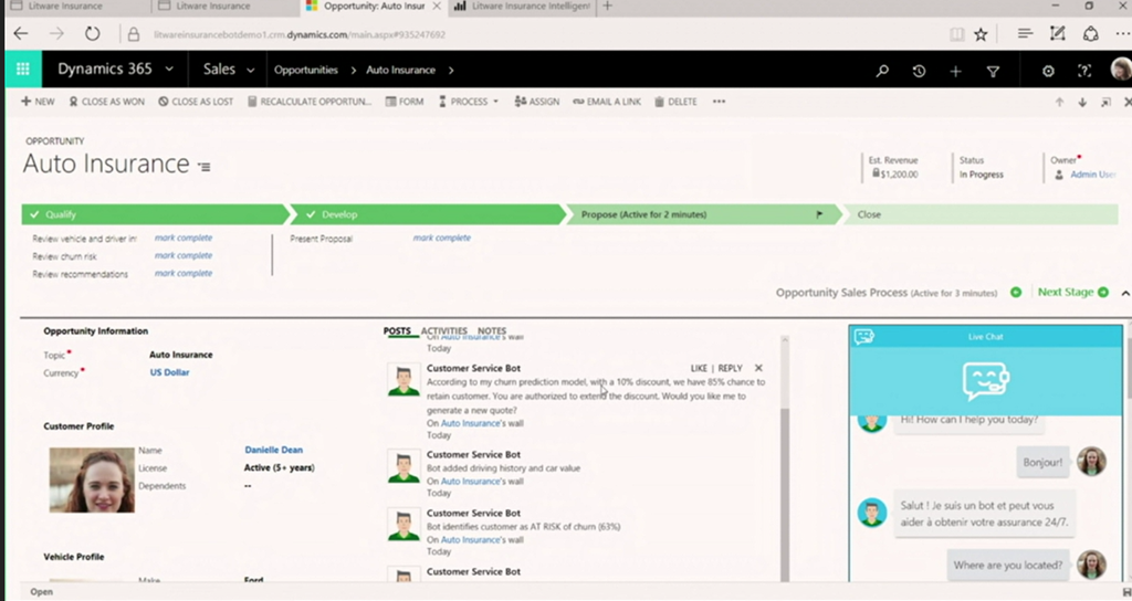 デモはWebサイトにBot組み込んだりしたものですね。自然な感じで(チャットなりで)システムとやりとり。裏でDynamics CRMと連携したりComputer Vision APIと連携したり。![]()
