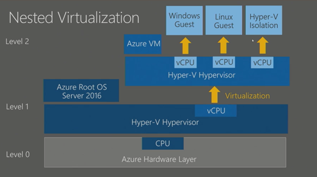 AzureのRoot OSがWindows Server 2016ベースになることでNested Hyper-Vが可能になることなどが要因です。(サポートされるインスタンスとしてはDv3とかになるのでしょうか?)※なんとも言えない