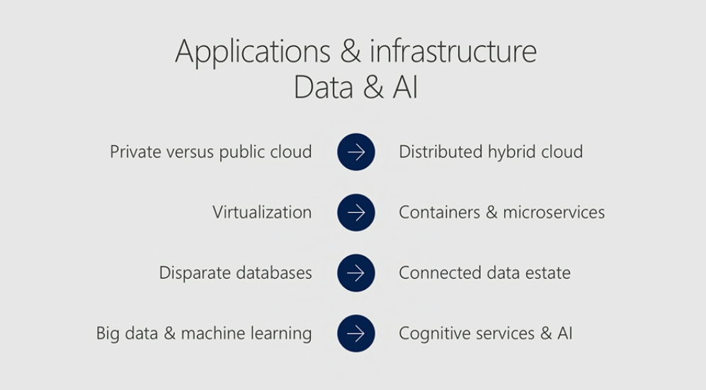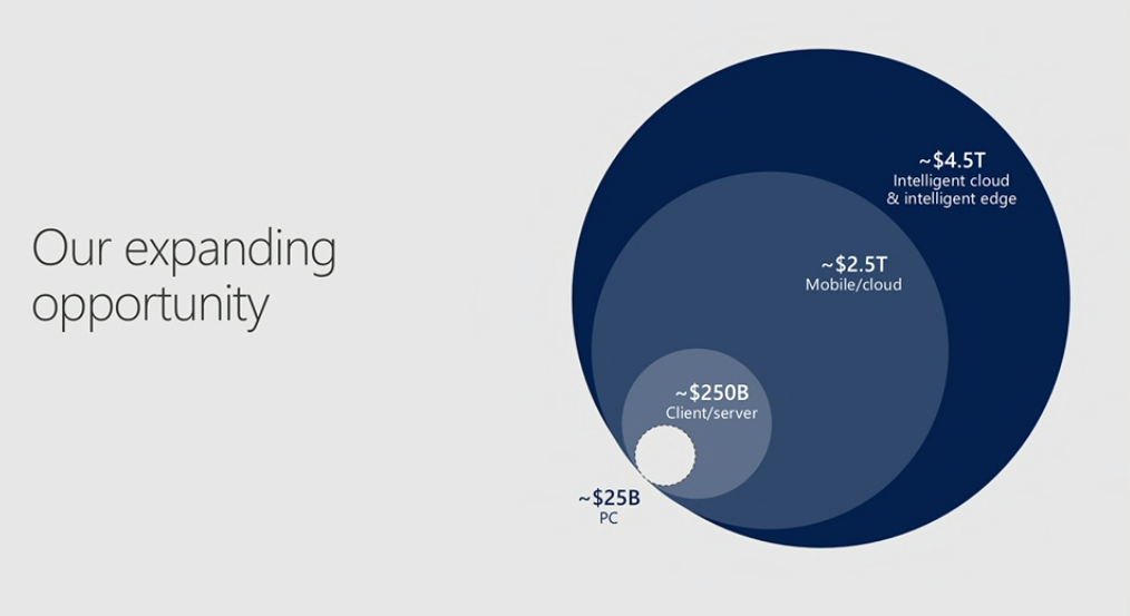 次はSatya氏ですね。Microsoftのミッションの再確認。Intelligent CloudやIntelligent Edge、デジタルトランスフォーメーションを強調してる感じですね。あとAIなどのパラダイムシフトのお話。マイクロサービスやコンテナーにも言及してましたね。