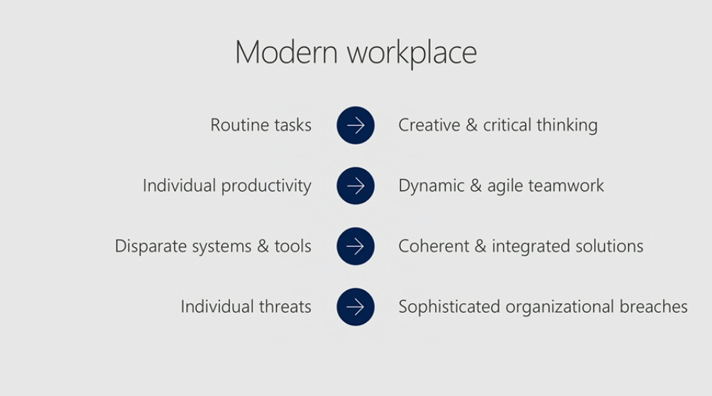 最近の仕事の状況。ルーティンワークからクリエイティブで重要な思考へなど。そしてMicrosoft 365のアナウンス。Office 365やEMS、Windows 10など企業内で利用するソフトウェアやセキュリティなどをひとまとめにした感じでしょうか。