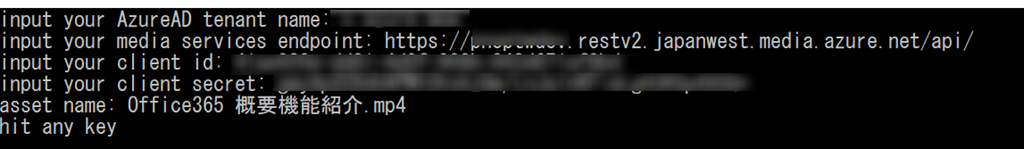 最初にToken取得用のCredentialsを作ります。その際にAzureの環境を指定(引数のazureEnvironment)するのですが、パブリックのAzureやChina、Germanyなどは定数で用意されているのでそちらを使います。Azure Stackなどの場合は自前で生成しましょう。またCloudMediaContextのコンストラクタに渡すapiServer(Media Servicesのエンドポイント)はAzureポータルより取得します。