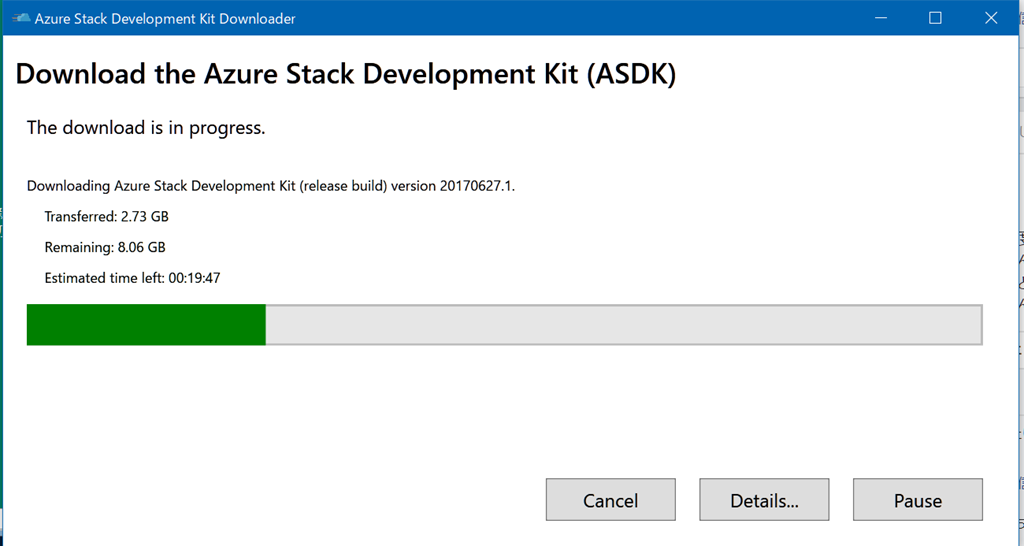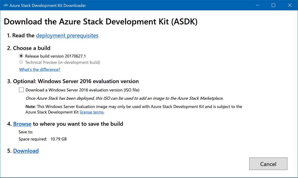Download the deployment packageのページからAzure Stack Development Kitをダウンロードして実行します。![]()
