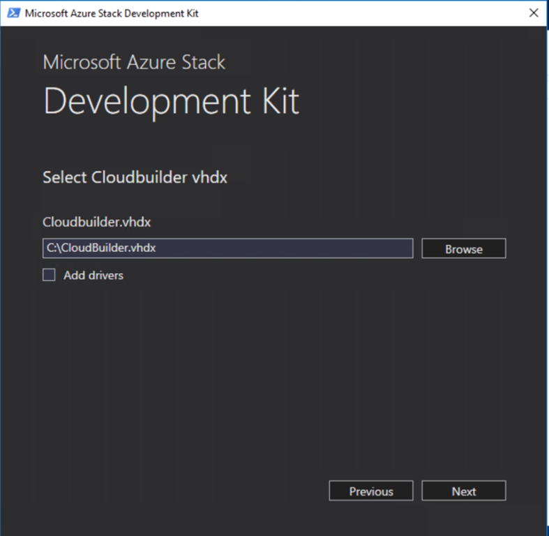 取得した asdk-installer.ps1 を実行します。ウィンドウが表示されるのでPrepare Environmentを選択し、CloudBuilder.vhdxを指定します。オプション構成はよしなに。![]()