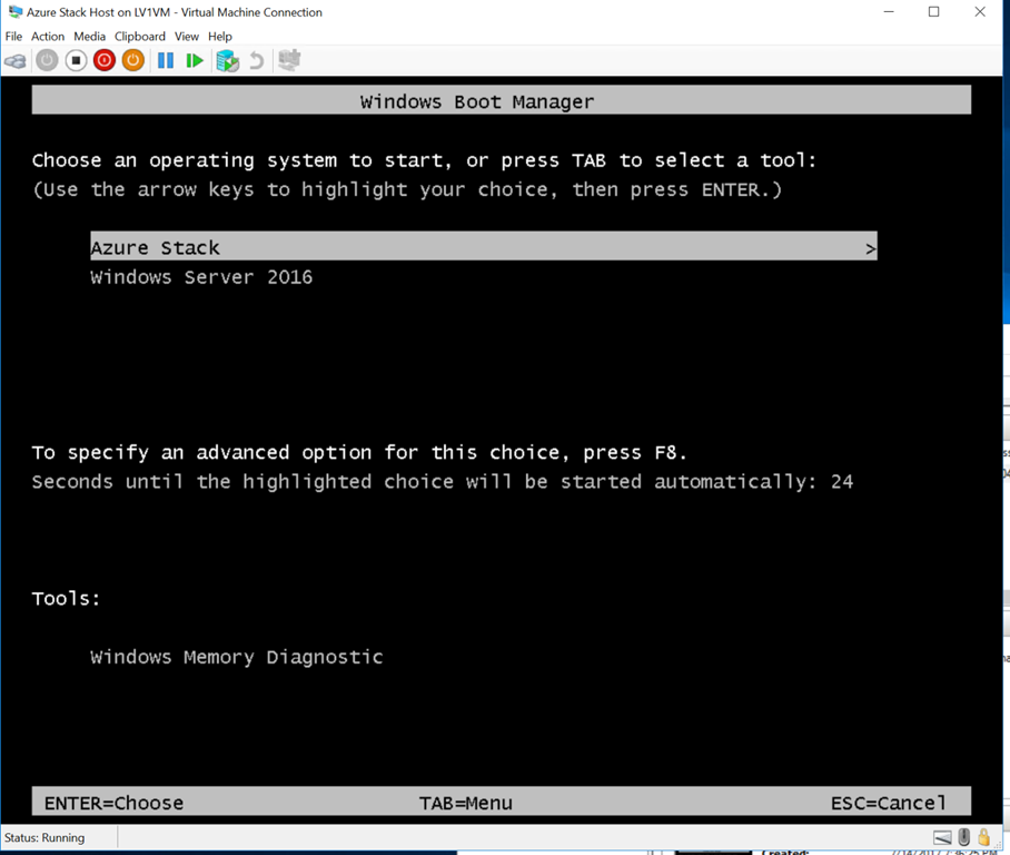 最後のReboot Nowで再起動します。この時点でブートローダーにAzure Stack用(CloudBuilder.vhdx)が追加されてます。![]()