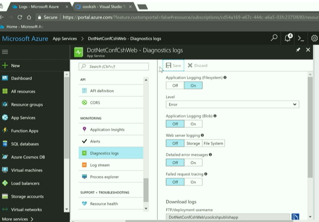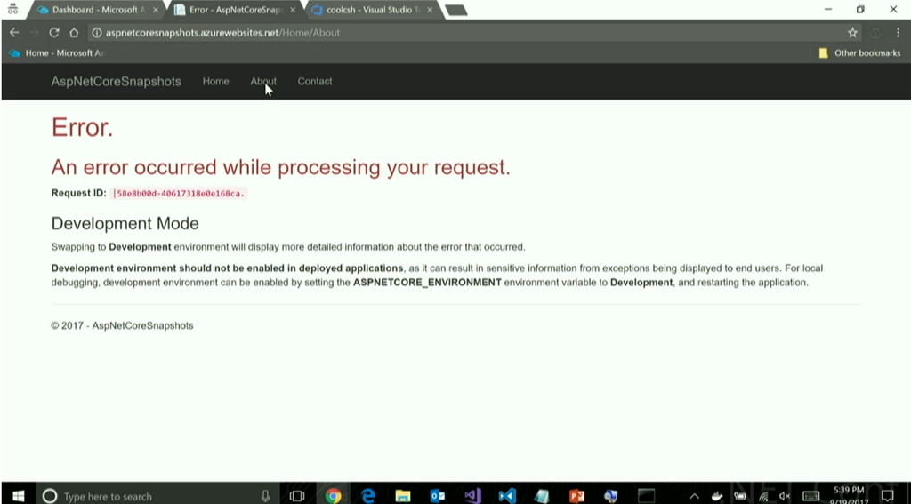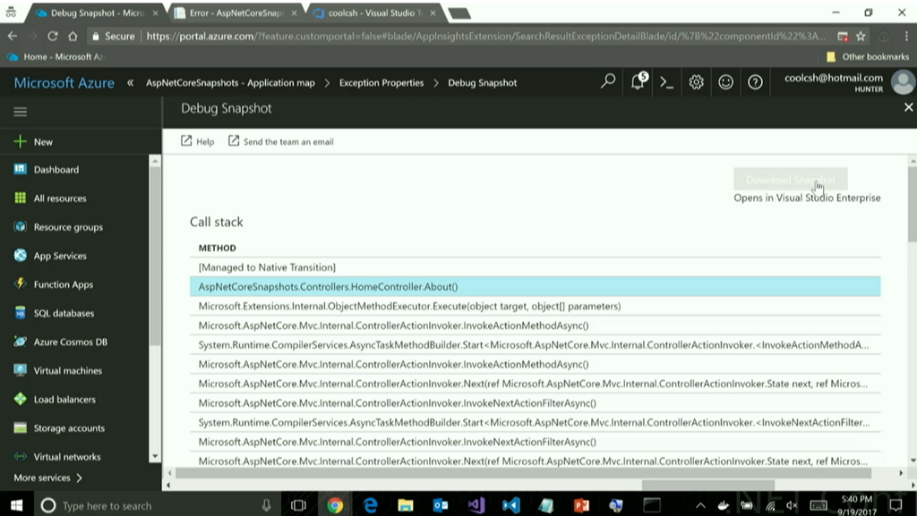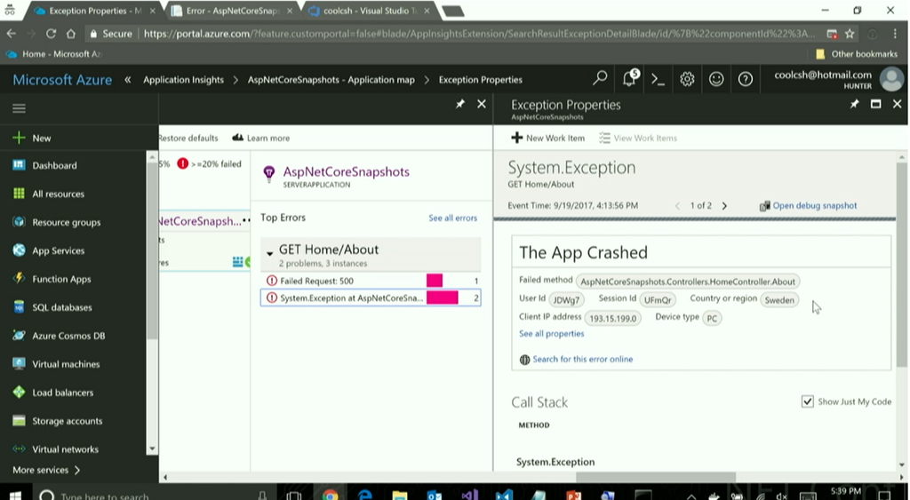 デモはAzure上にデプロイしたWebアプリケーションの診断ログを見たりですね。スナップショットからデバッグ状態に戻したり。本番環境のデータでの状態を確認できますね。![]()
