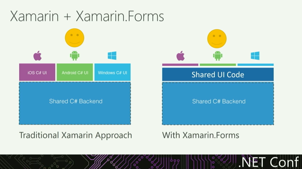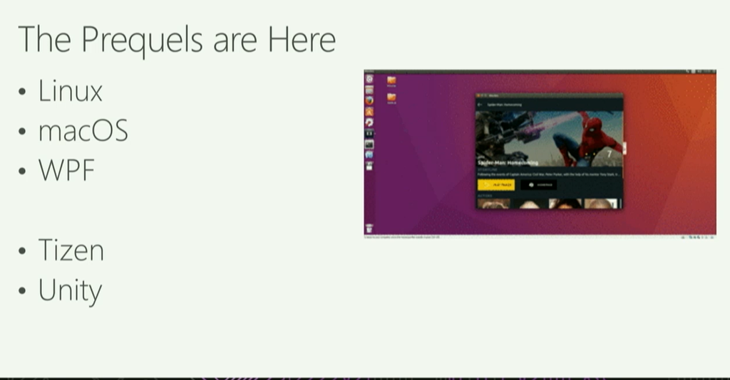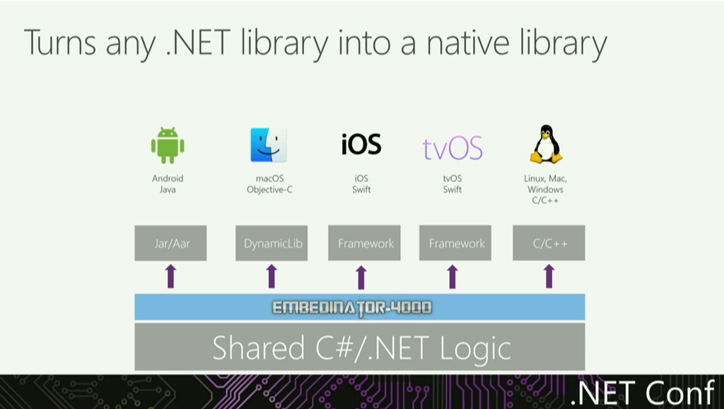 Xamarin.Formsのカバー範囲とか。LinuxやWPF、macOS、Tizen、Unityもサポート。UIコードの共有部分も増えそうです。各プラットフォームのネイティブライブラリも.NET Libraryへ。デモではmacOSのネイティブライブラリ(Objective-C)を生成してXcodeで実行してたりしました。![]()