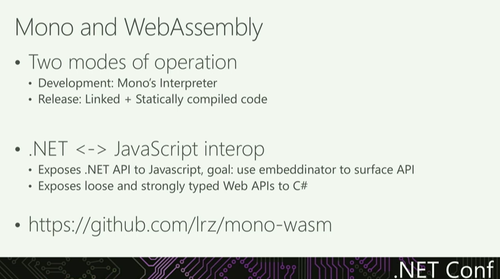 後はMonoやWebAssemblyの話や.NET <-> JavaScript Interopとか。![]()