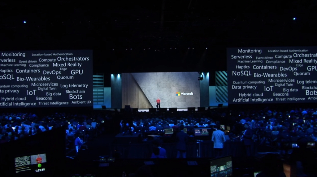 さて2つ目はScott Guthrie氏よりスタートです。IoTやゲームでのAzureの事例の動画とか。(わかる話ってイイナー)![]()
