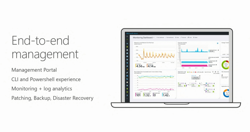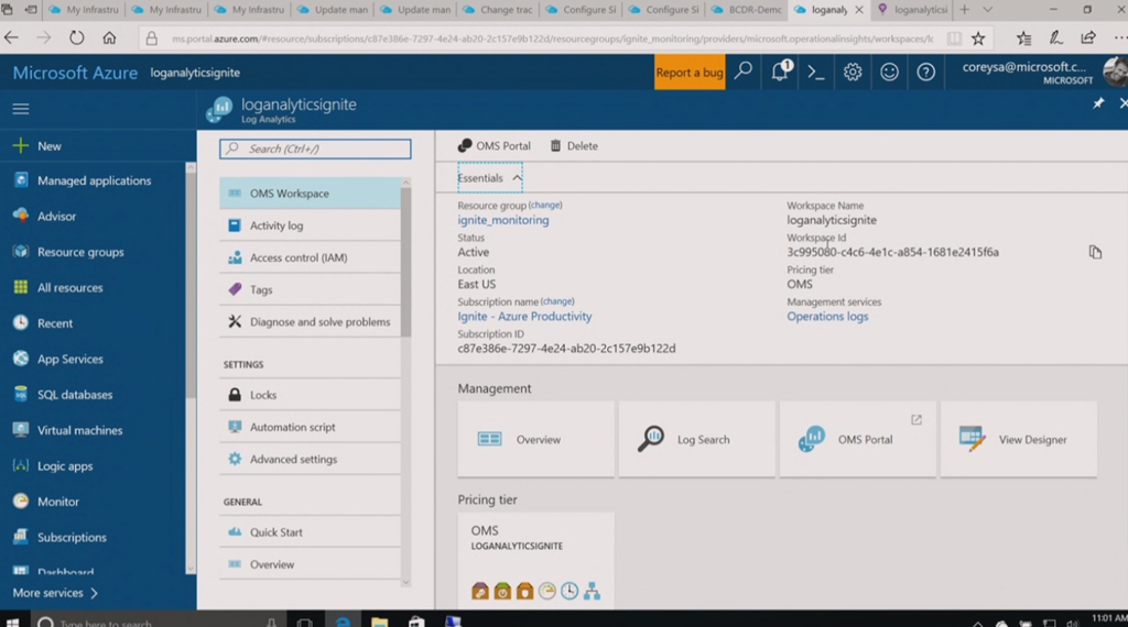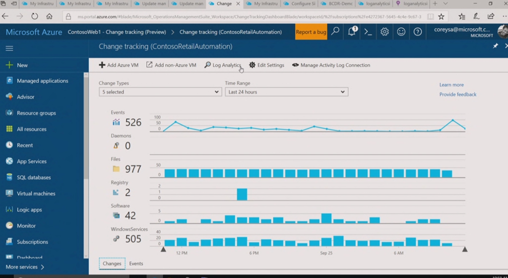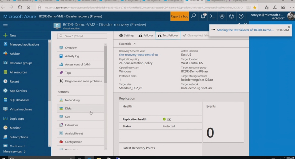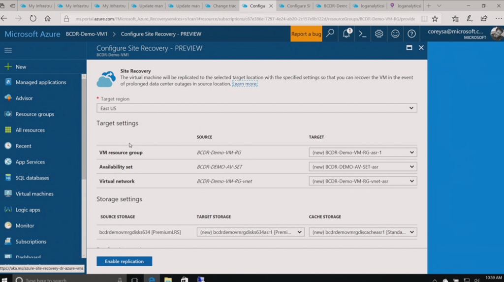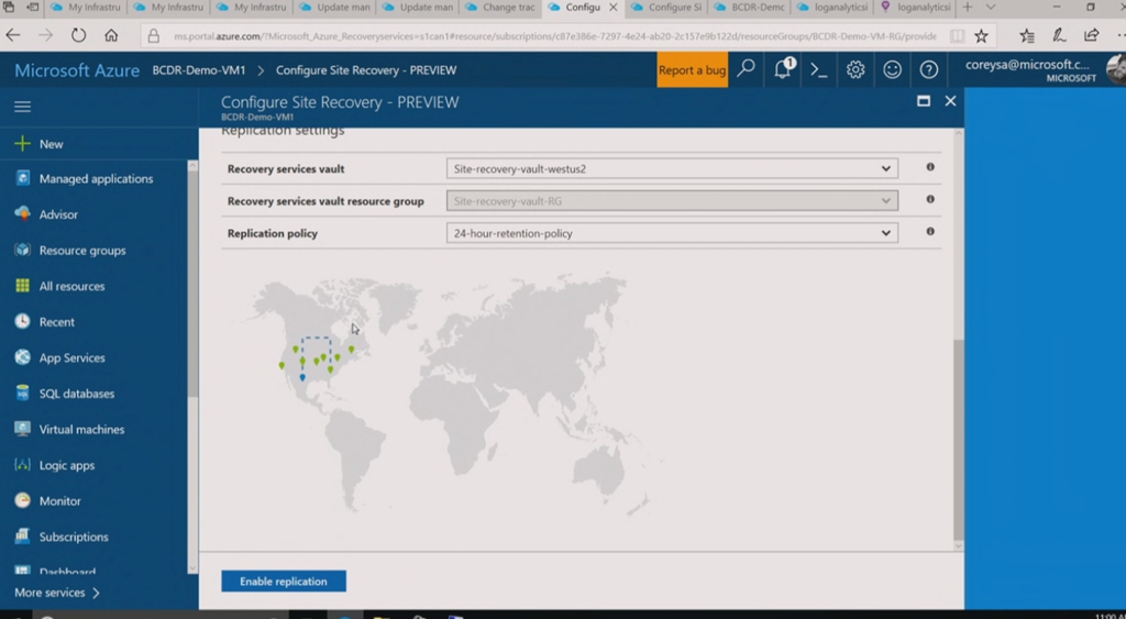 次はSite Recoveryの話。1クリックでDRサイト作ってテストフェールオーバーしたりもできます。それからLog Analytics使ってログ分析。事例動画はHSBCですね。![]()