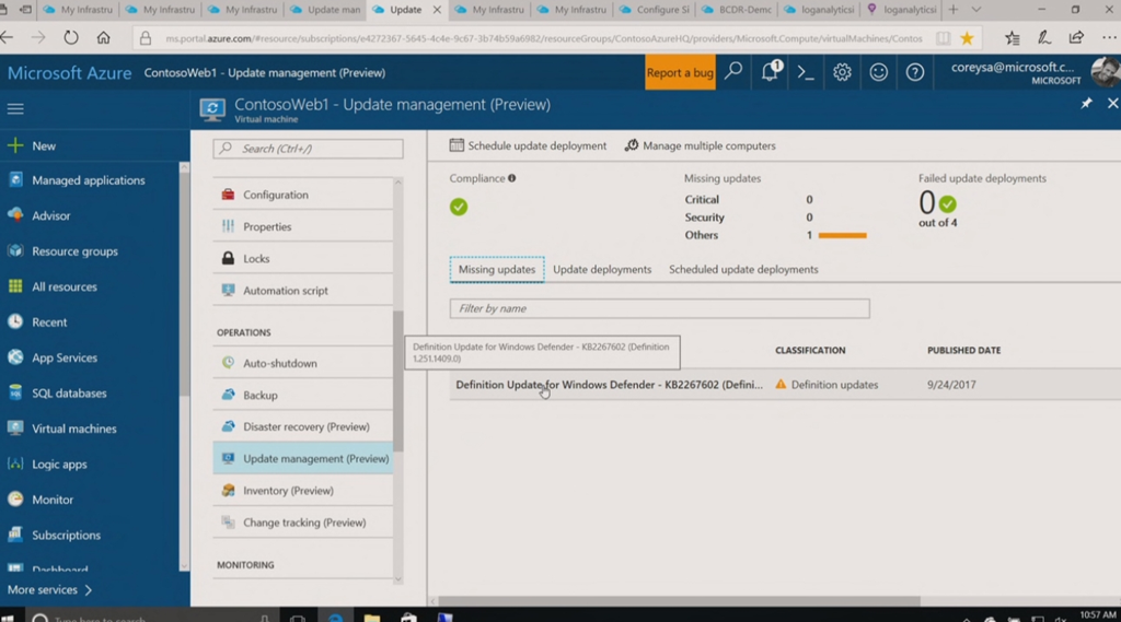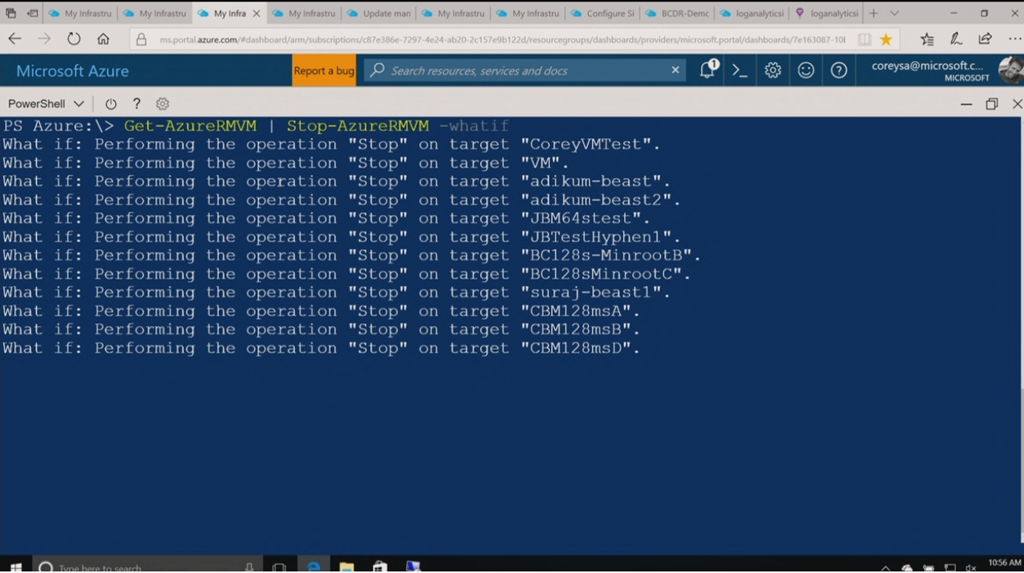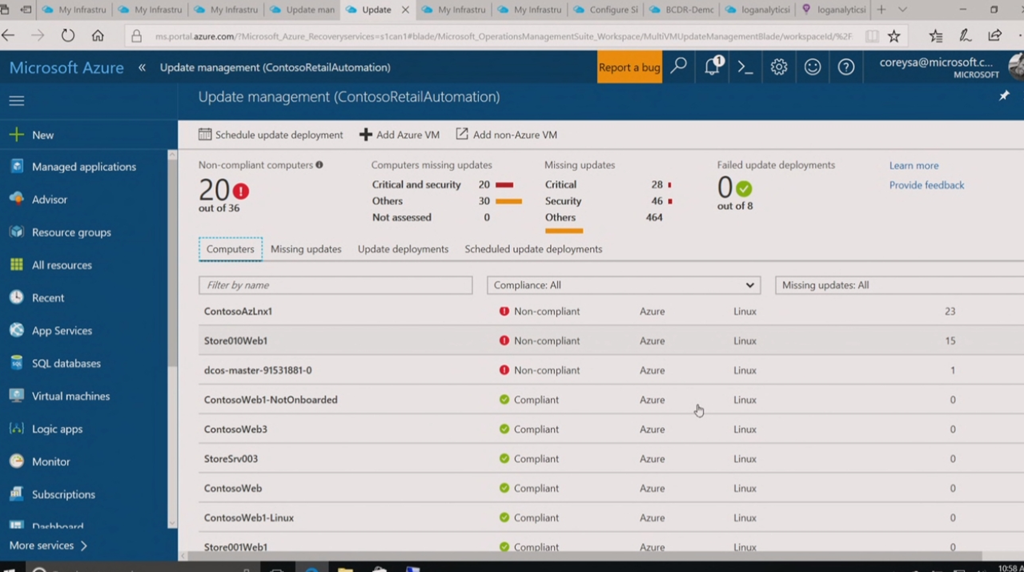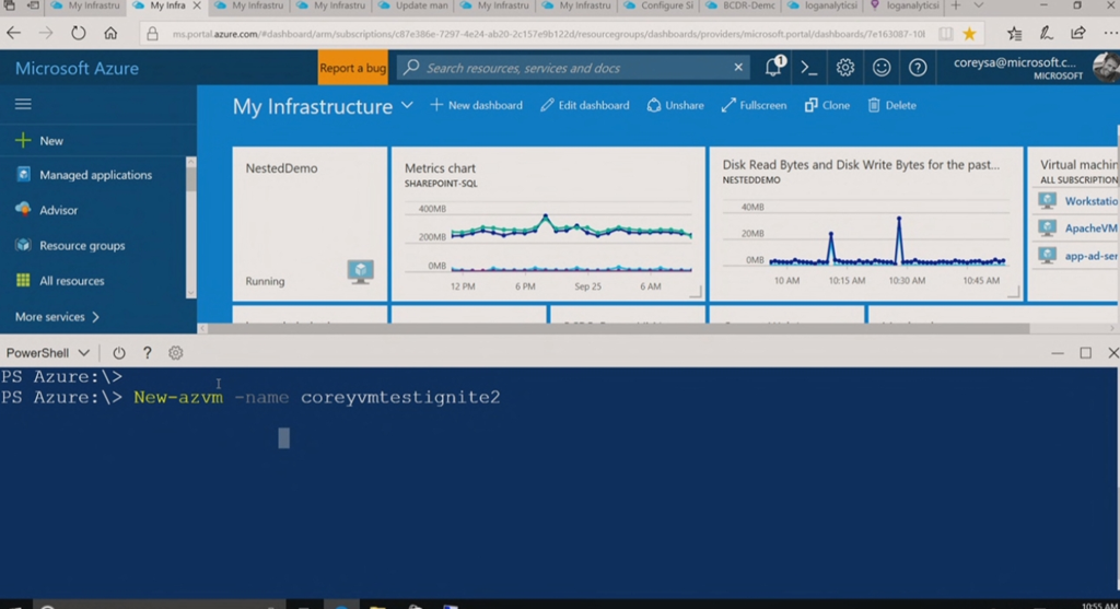 ということで最初のデモはCorey氏より。Azure上の3.8TBメモリなVMでNested Virtualizationするデモから。それからCloud ShellにAzure PowerShellも来たのでそちらのデモも。次はPreview機能としてVMのUpdate(パッチあて)とかをポータル上から複数VMに行ったりUpdate Managementのデモ。WindowsもLinuxもいけますよ。![]()