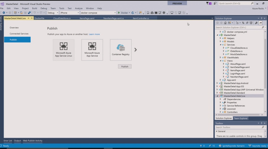 Xamlのエディット&コンテニューにDockerコンテナーサポート、Container Registryサポートなどなど。Xamarinの事例はUPSのアプリですね。![]()