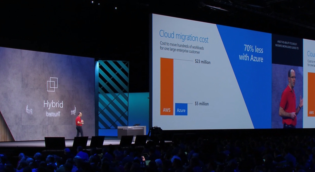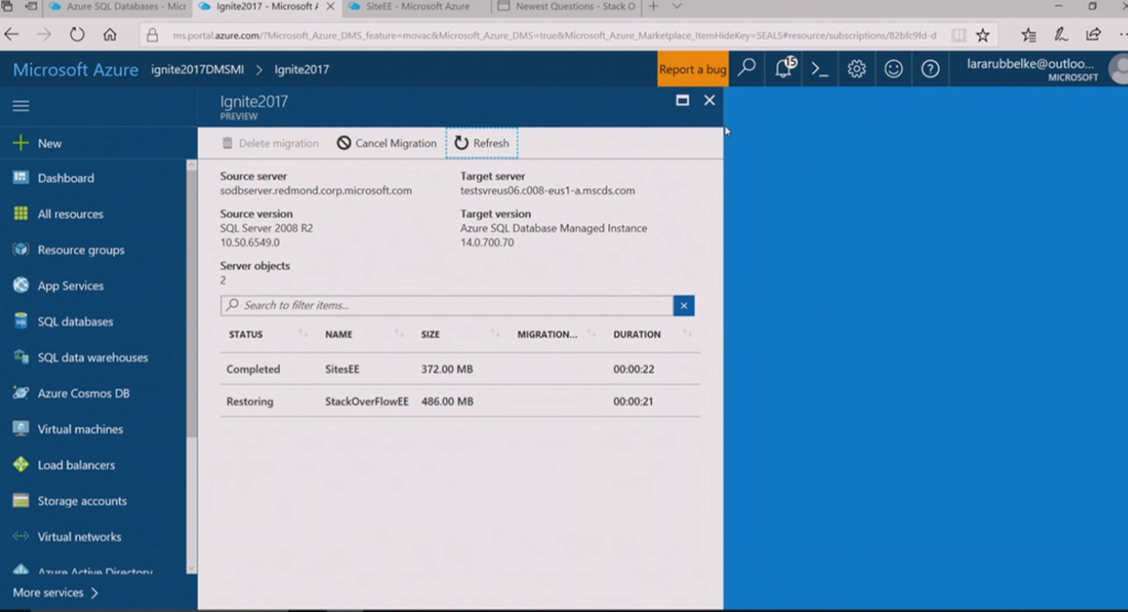 それからAzure Database Migration Serviceの話ですね。オンプレ – Azureでデータの移行ができたりします。さらにLara氏がデモを継続。SQL Server 2008に乗っているStackOverflowなやつをData Migration ServiceでSQL Databaseに移行したり。※コスト比較は微妙だなー![]()